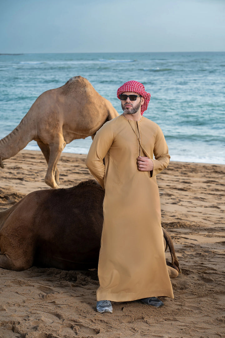 استمتعي بلمسة راقية من الأناقة مع الكندورة العمانية بلون بني فاتح. مصنوعة من قماش فاخر بلمسة نهائية من الأمونيا، قابلة للغسل والارتداء. تتميز بتصميم عماني كلاسيكي مميز، وخياطة متقنة. إنها تعبير خالد عن الأناقة والرقي.