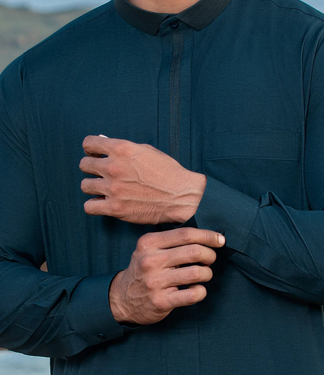 ثوب سعودي أخضر زمردي داكن بياقة قميص - إكسود إليجانس
