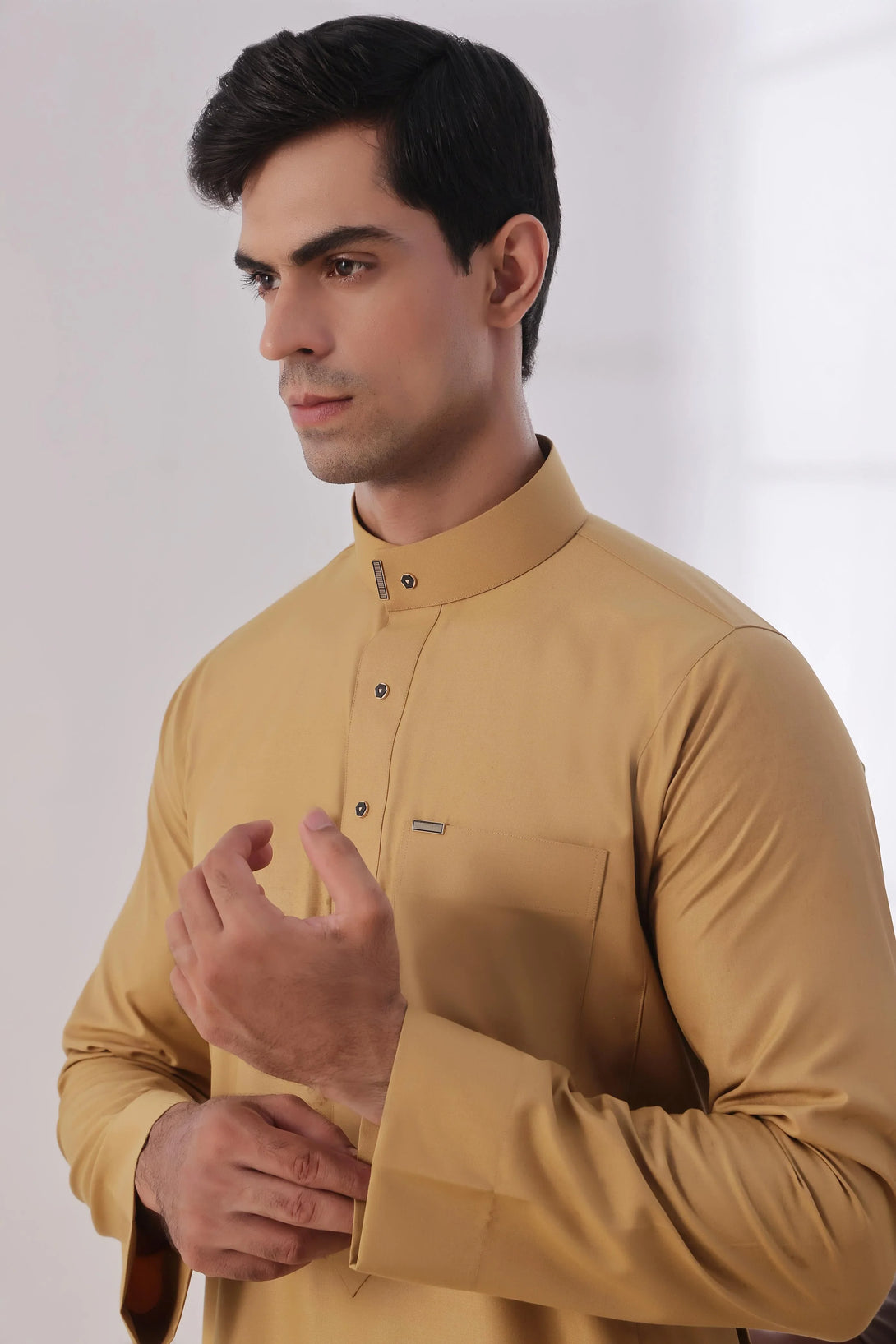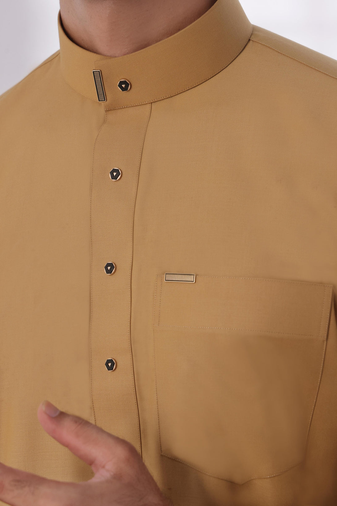 تمتع بأناقة راقية مع ثوبنا ذو الياقة المستديرة بلون بني فاتح. مصنوع من قماش فاخر سهل الغسل والارتداء. يتميز بياقة دائرية كلاسيكية وحواف أنيقة وخياطة متقنة. إنه رمز خالد للأناقة والرقي.
