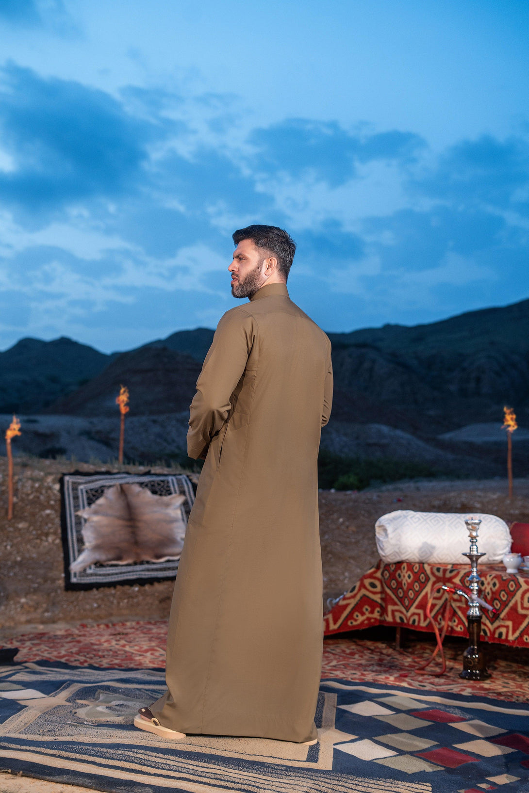 ثوب سعودي بياقة قميص - لون القهوة - أناقة