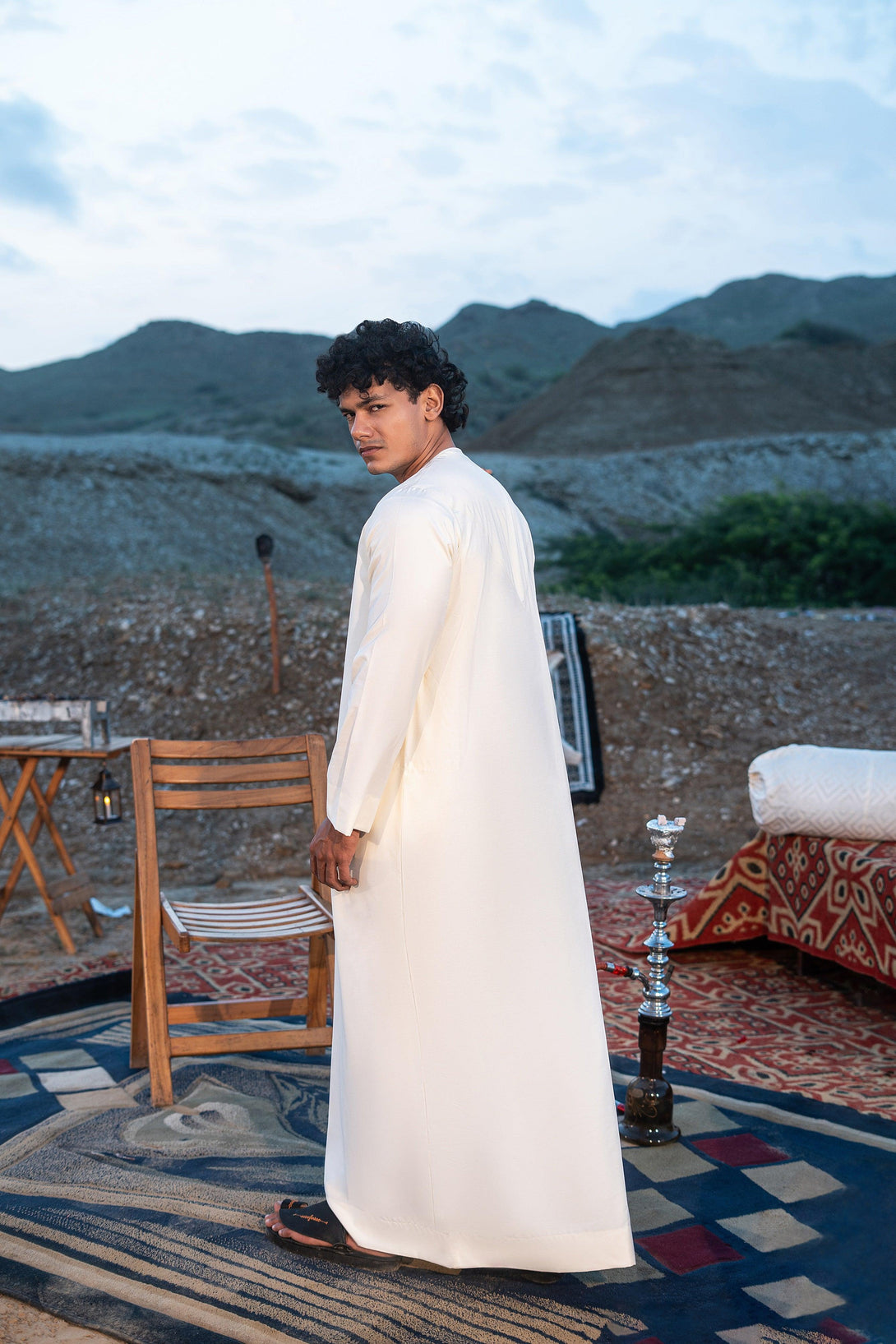 تألقي بأناقة مع ثوبنا الإماراتي الكريمي، المصنوع من قماش بوسكي-فينيش عالي الجودة، سهل الغسل والارتداء، لراحة وأناقة لا مثيل لهما. مصمم بنمط إماراتي كلاسيكي، يعكس أناقةً عفويةً وأسلوبًا خالدًا. مزيج مثالي بين التقاليد والأناقة العصرية.