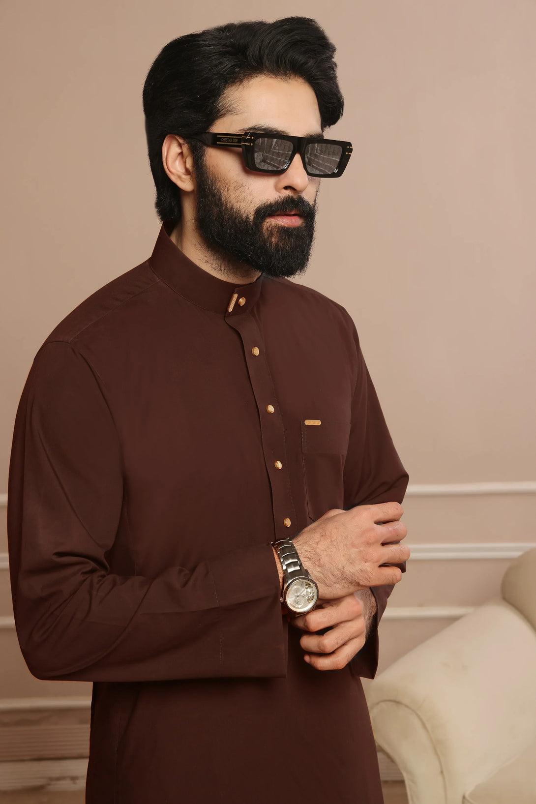 استمتع بالرقيّ مع ثوبنا "راست" ذو الياقة المستديرة. مصنوع من قماش فاخر سهل الغسل والارتداء. يتميز بياقة دائرية كلاسيكية، وحواف أنيقة، وخياطة متقنة. إنه رمزٌ خالدٌ للأناقة والرقي.