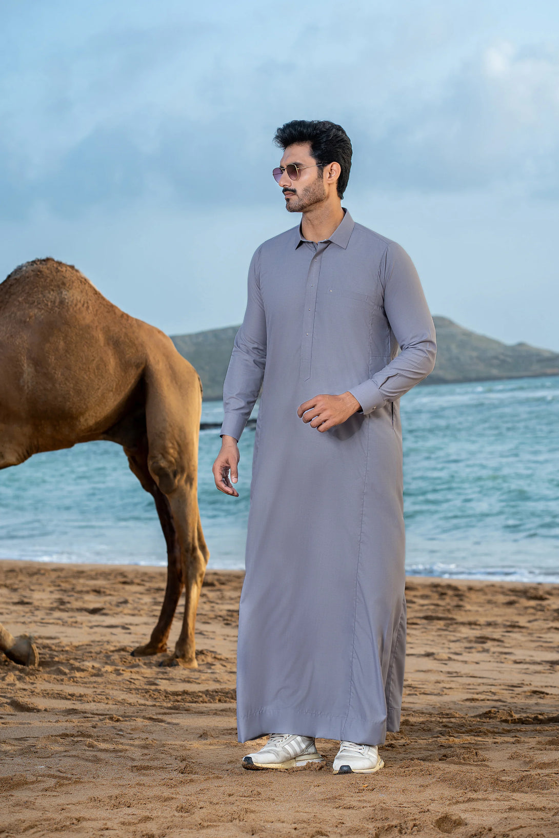Silver Gray Saudi Shirt Collar Thobe - Exude Elegance
